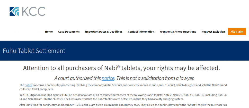 File Claim for Nabi Tablet Class Action Settlement Fuhu was a company which was made Nabi series tablets. Fuhu was